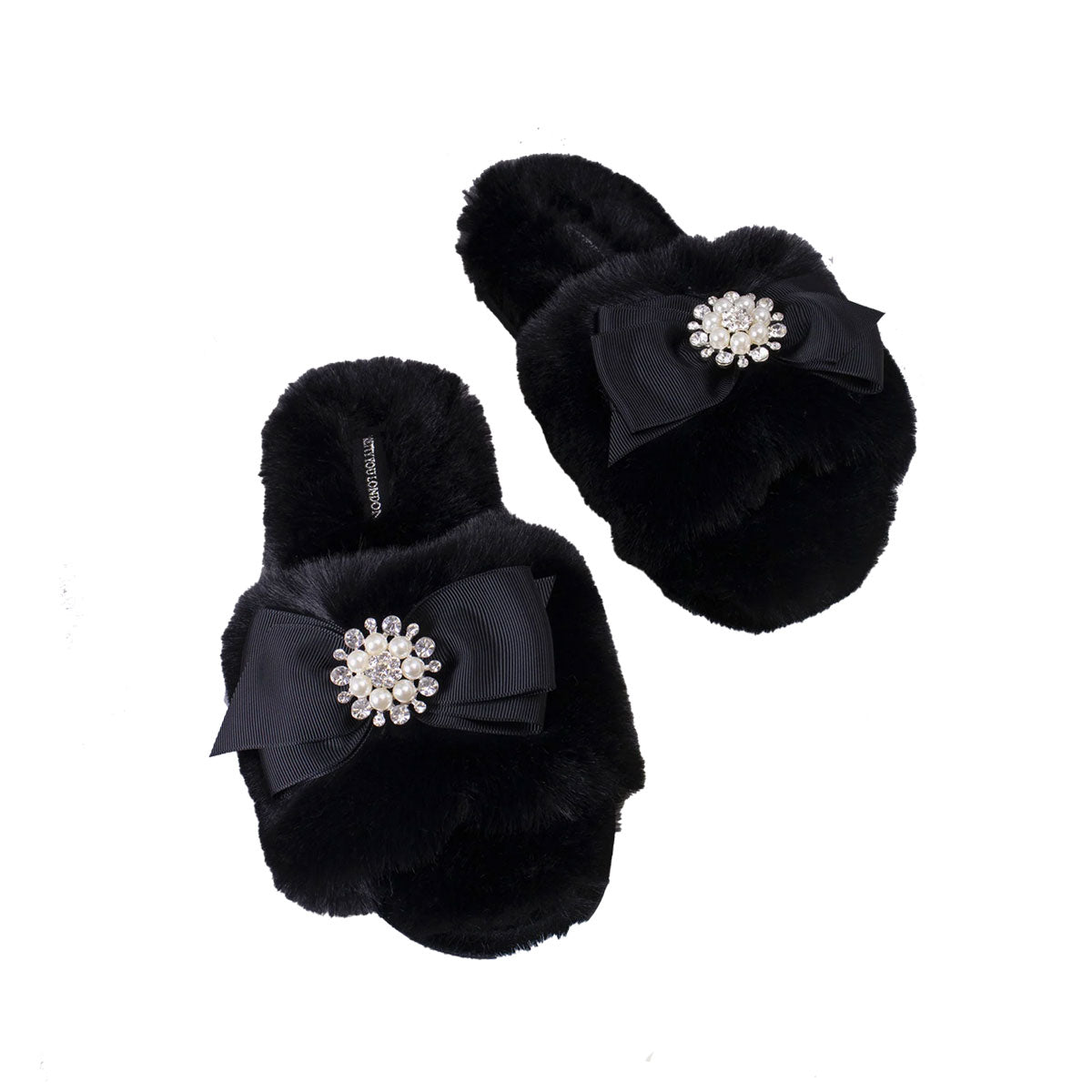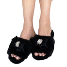 Step into luxury and comfort with the Pretty You London Anya Embellished Slider Slippers. Fit for a princess, these faux-fur slippers are adorned with a stunning jewel and pearl embellished bow. The non-slip soles and extra in-sole padding make these slippers a timeless and comfortable choice. Feel like royalty with every step.