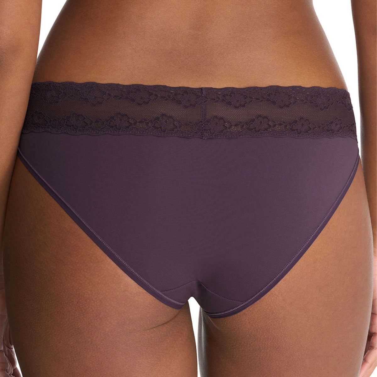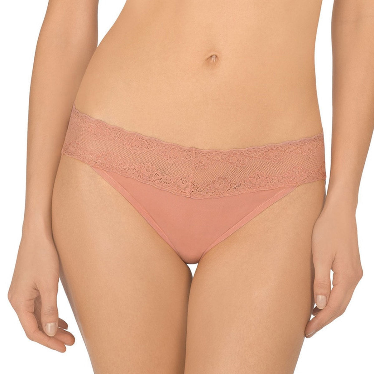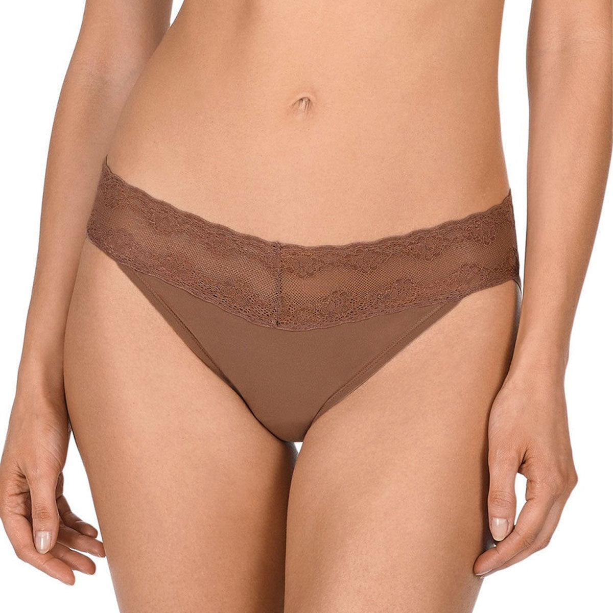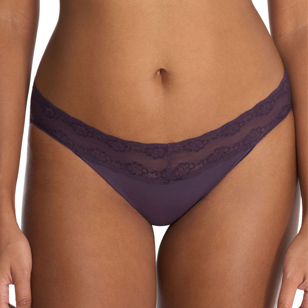 The Natori Bliss Perfection One-Size V-Kini offers unparalleled comfort and fit. Crafted with ultra-stretchy and soft lace, this bikini is designed to hug your body without any uncomfortable digging to ensure an effortless wearing experience. Plus, a smooth design featuring lightweight microfiber and flat high recovery elastic provides an added layer of comfort. Enjoy a blissful feeling with the perfect panties.