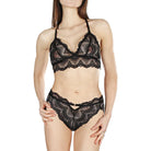 Our Marlene Bralette and Open Back Panty from LoveMoi dare to show a lot of skin in the front and in the back. This swirly lacy number features sexy bralette with adjustable straps for comfort. The open back panty bottom will catch your partner’s attention behind closed doors.