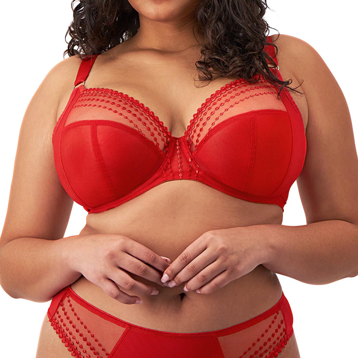 The Elomi Matilda Plunge Bra in Haute Redis a lingerie drawer essential! Crafted with contemporary bead embroidery, it features 3 piece cups plus side support panels for forward shape, uplift & support up to size K. With its low center front & elasticated neck edge, you get a great plunge without the push up. Look and feel great with this must-have!