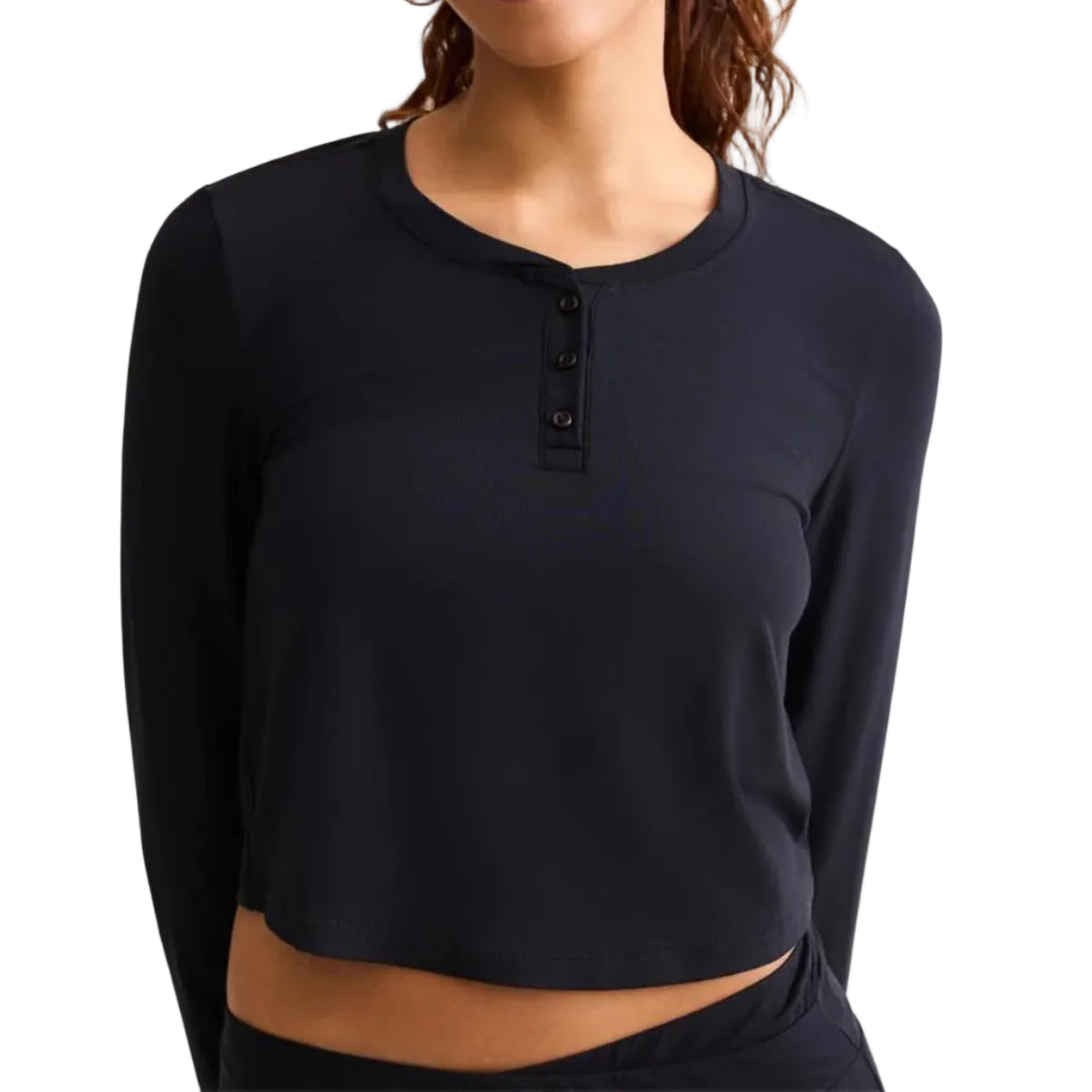 Slip into effortless comfort with the Fleur't Henley Top. This cloud-soft, stretchy essential features a flattering cropped silhouette and functional button front, making it your go-to for lazy mornings, quick errands, and everything in between. Versatile enough to layer or wear solo, it's the piece you'll reach for again and again.