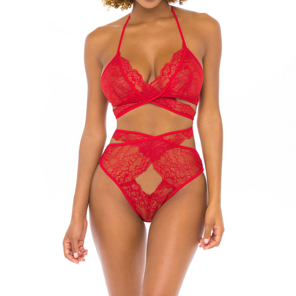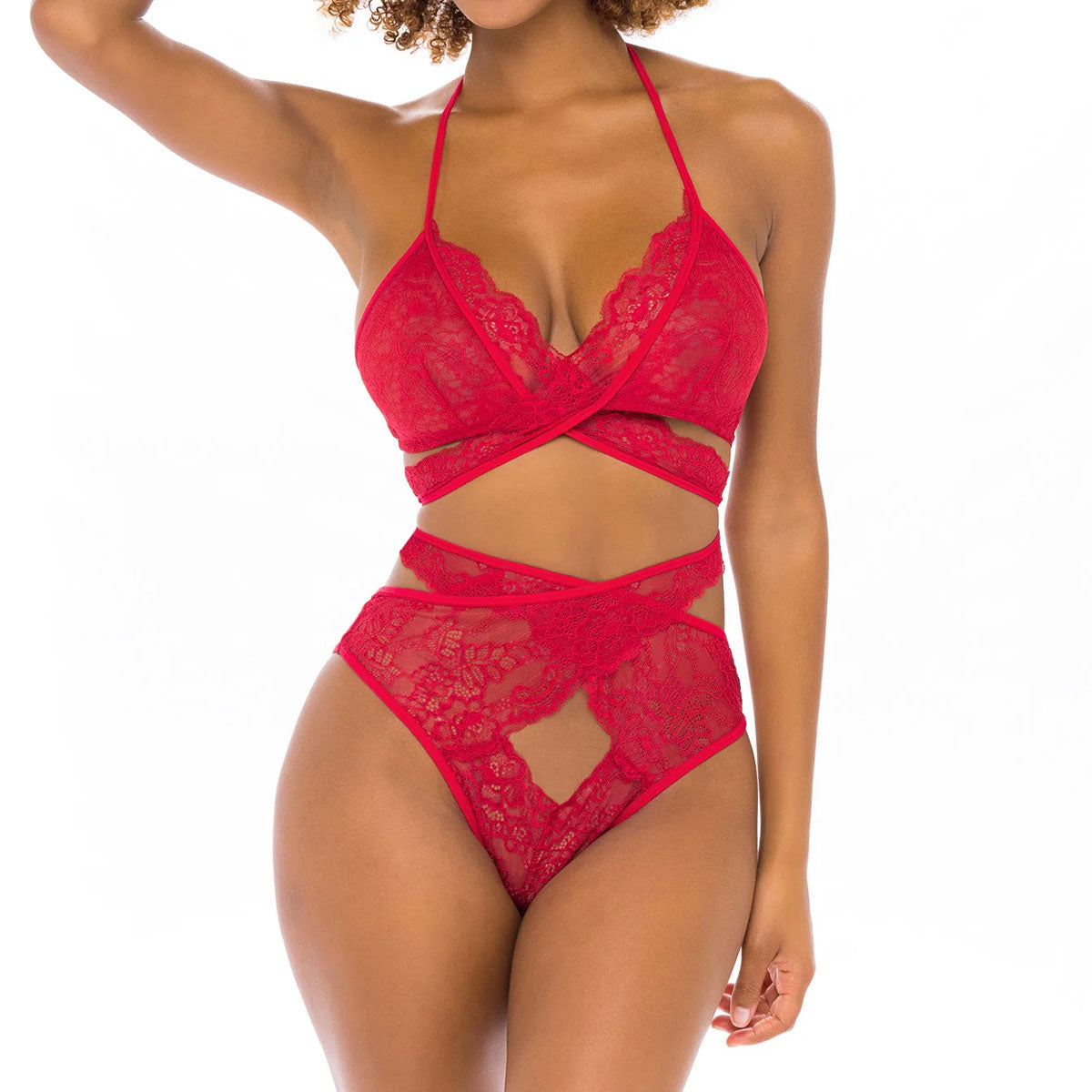 40-11258 Charlena Cut Out Lace Set | Red