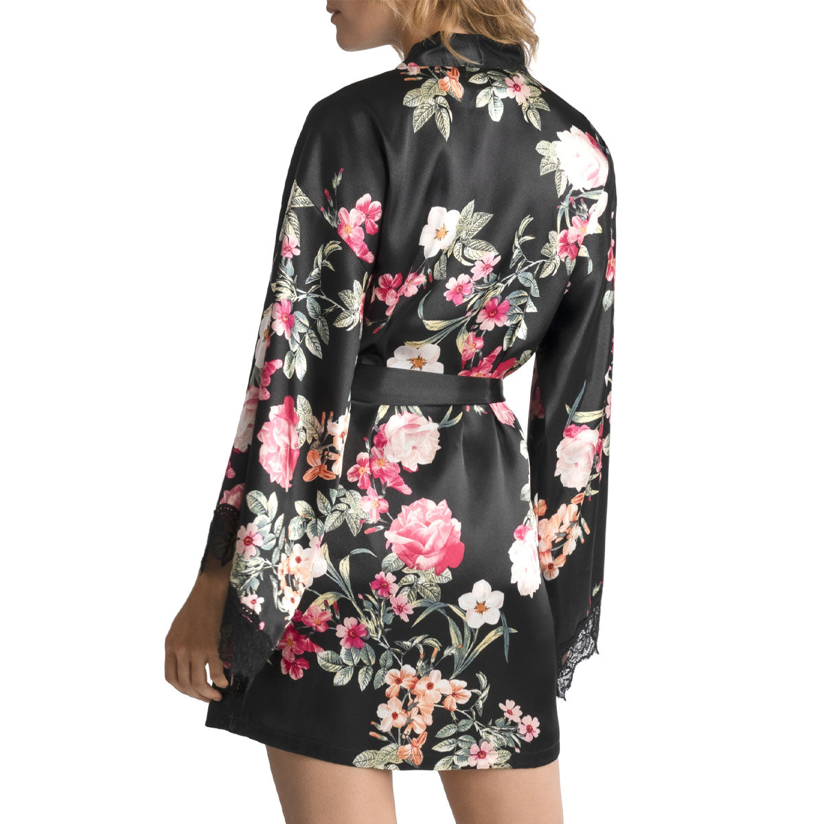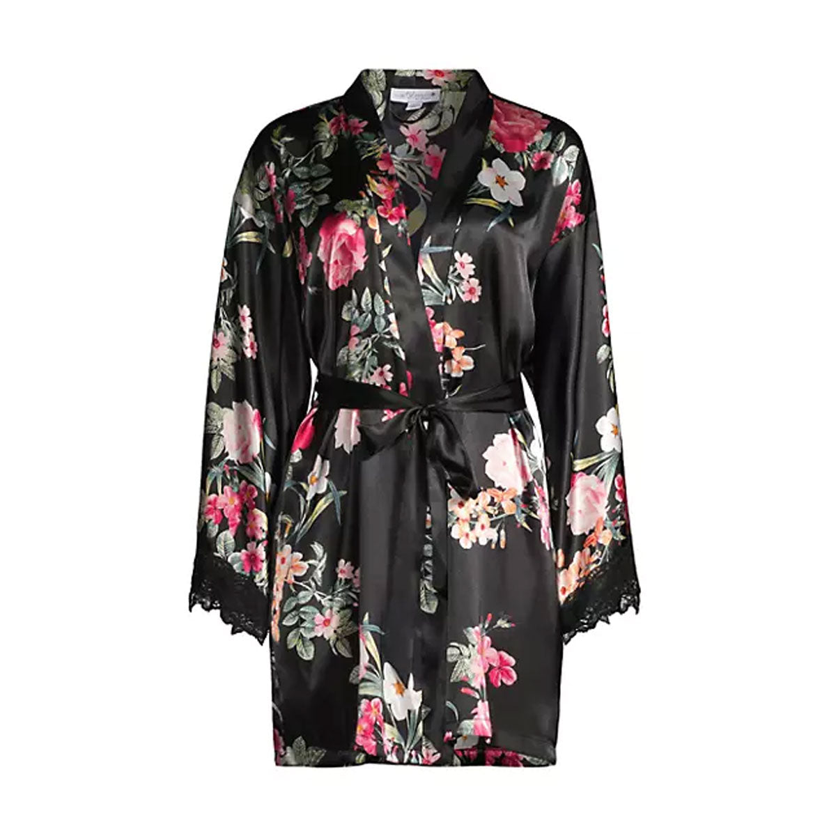 • Holiday Romance Collection Wrap Robe in black floral print.