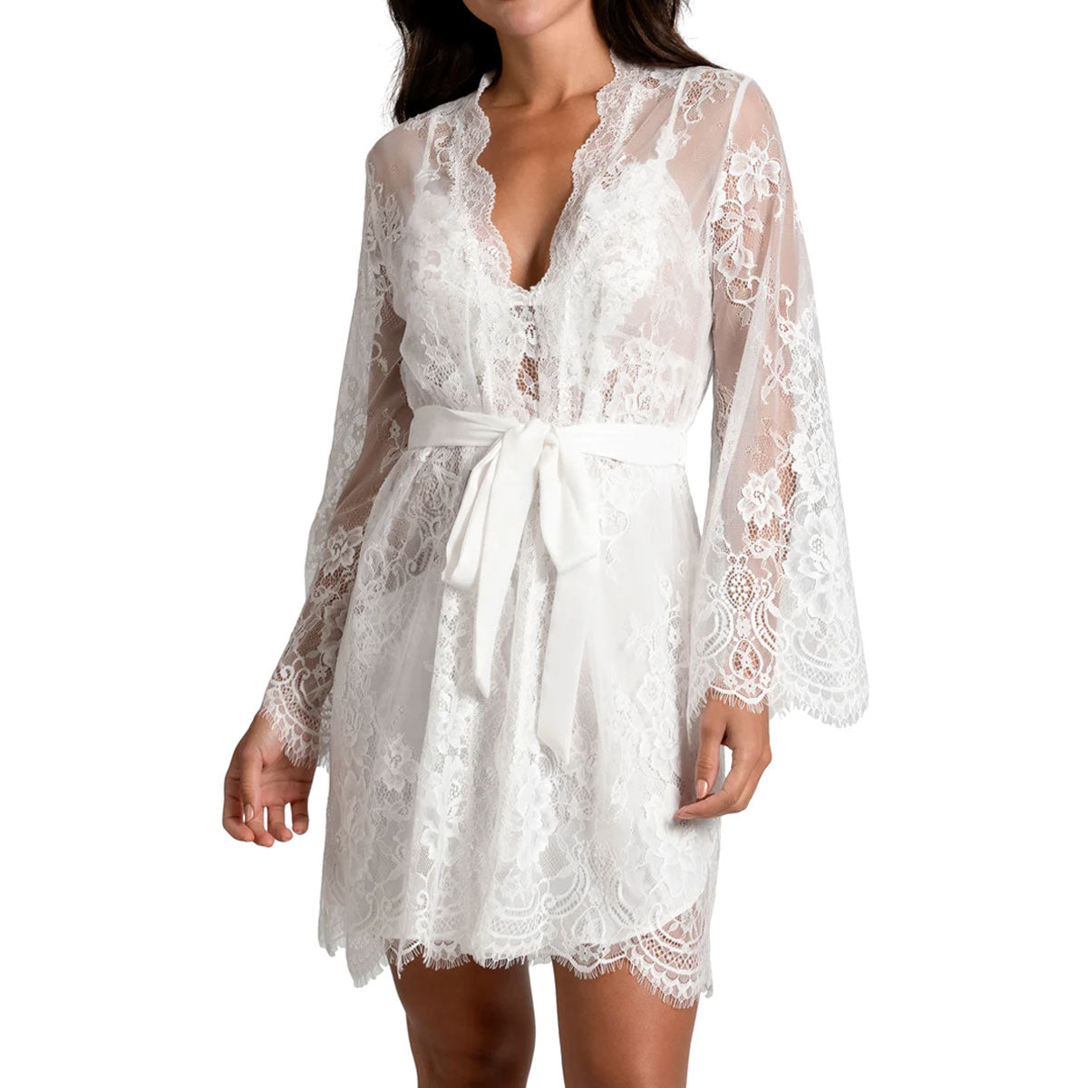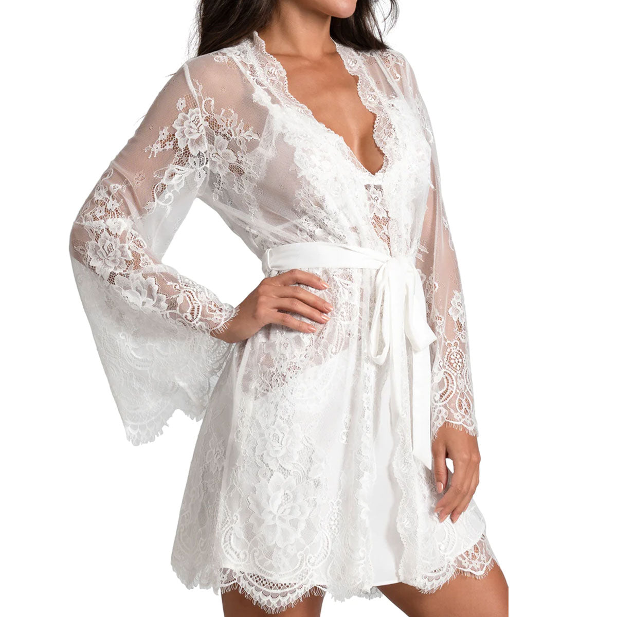 Indulge in luxury with our In Bloom Marry Me Lace Wrap Lingerie Robe. This elegant ivory wrap features a delicate V-neck and bracelet sleeves, perfect for feeling glamorous while getting ready. The self-tie waist adds a flattering touch, while the soft polyester material offers ultimate comfort. Get ready to feel like a queen on your special day!
