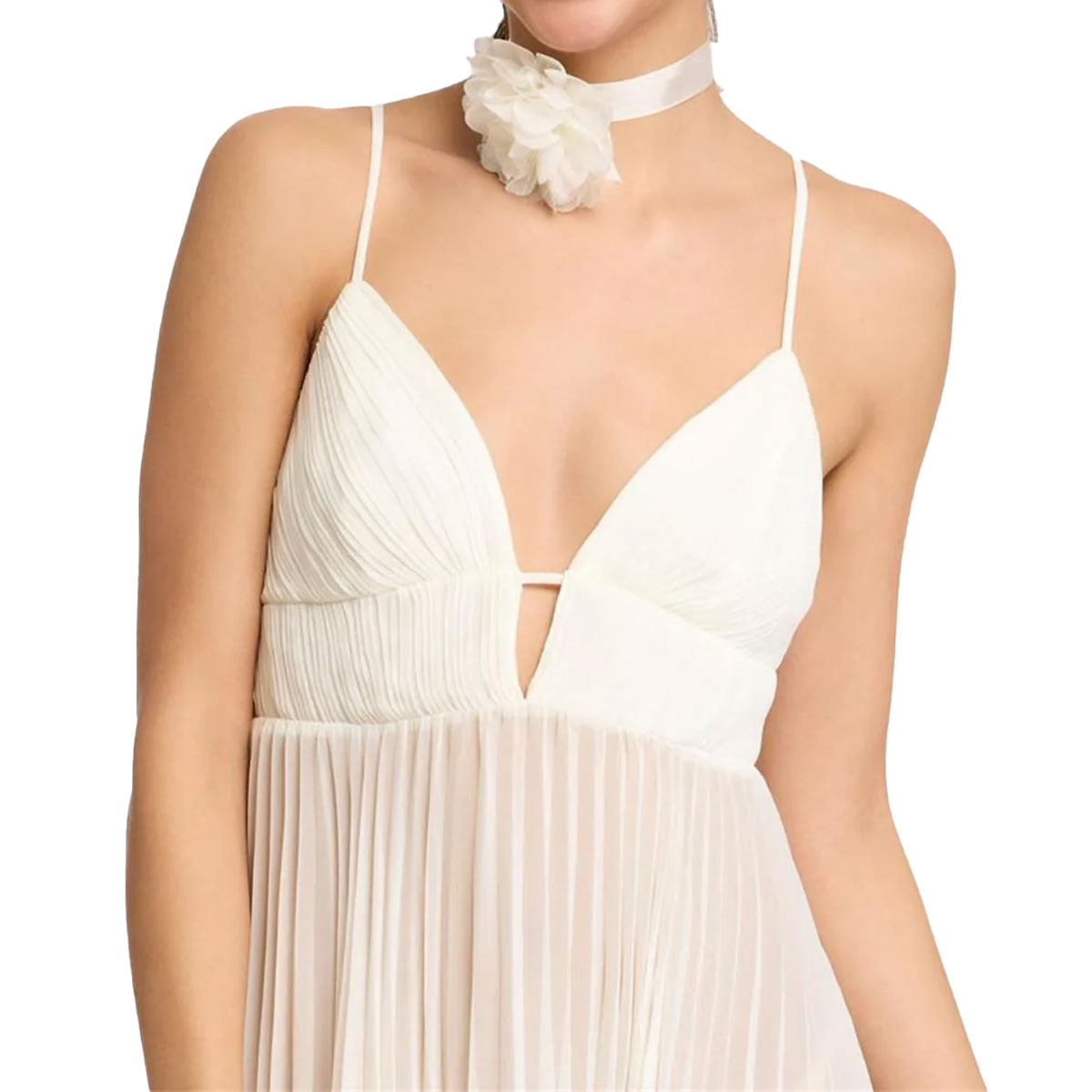 Experience the perfect blend of romance and modernity with our Rya Collection Shirin Chemise in ivory. Versatile with a detachable choker and playful pleating, this chemise is a splendid choice for those seeking to cherish every moment. Criss-cross back adds an extra touch of charm.