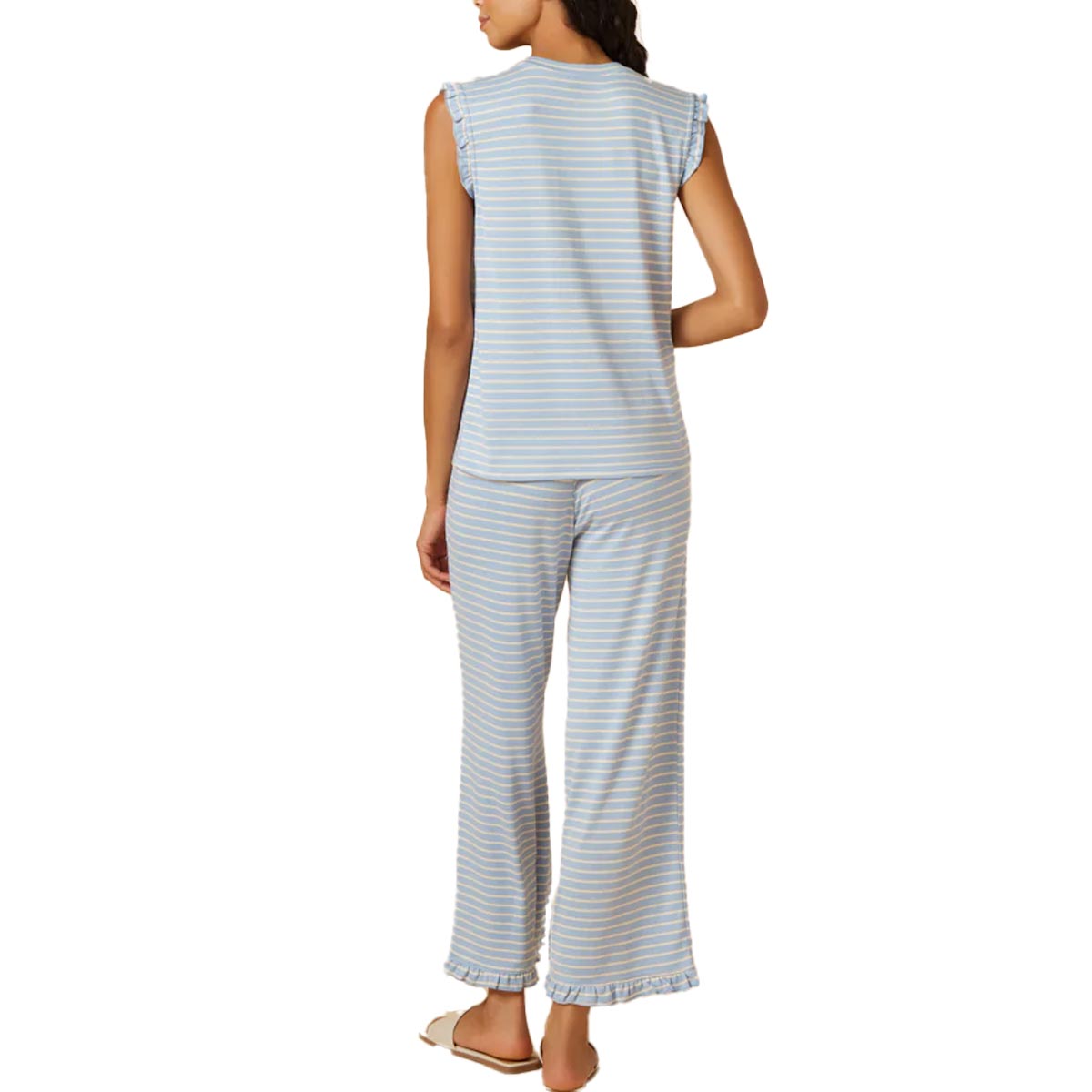 2200-2 Dream Ruffle V-Neck w/Cropped Pant | Blue Stripe