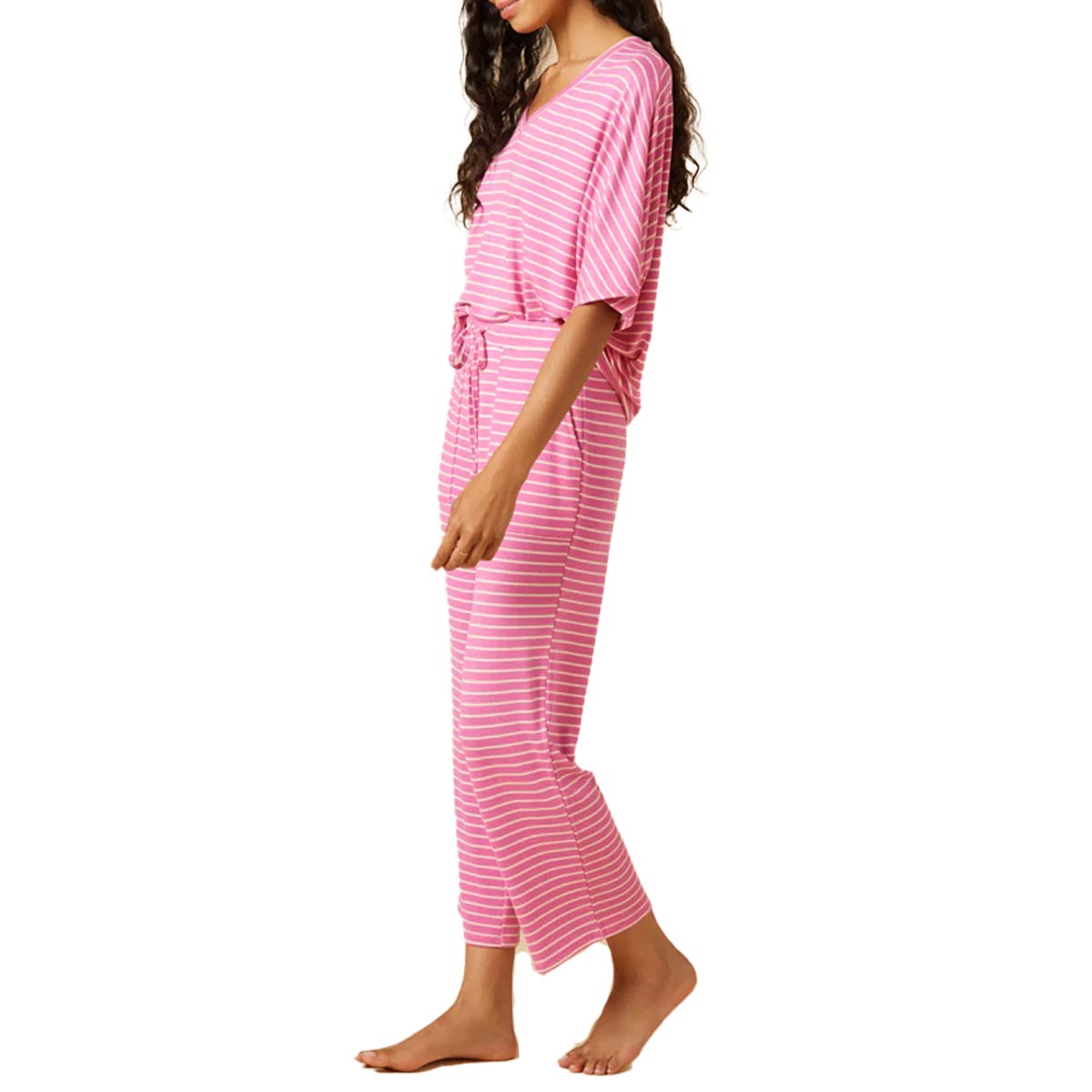 2300-2 Dream Relaxed V-Neck w/Capri Lounge Set | Fuchsia Stripe