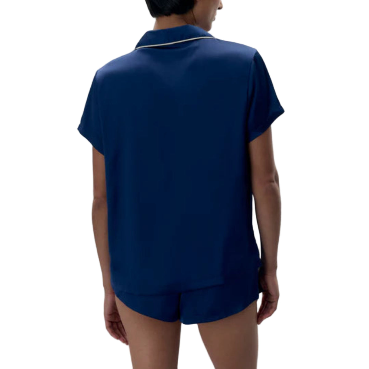 42363 Abigail Luxury Satin Short Pajama Set | Navy Blue/Cream