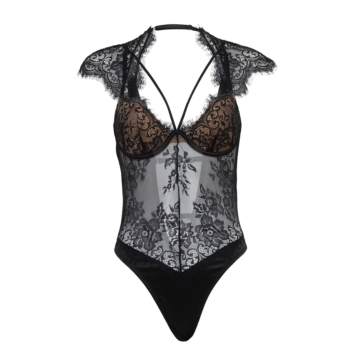 - CAP SLEEVE EYELASH LACE TEDDY WITH STRAP DETAIL
