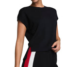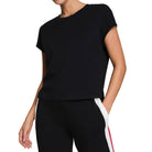 Perfect for layering or wearing solo, this versatile black tee combines style and function—a wardrobe essential for modern women on the go.