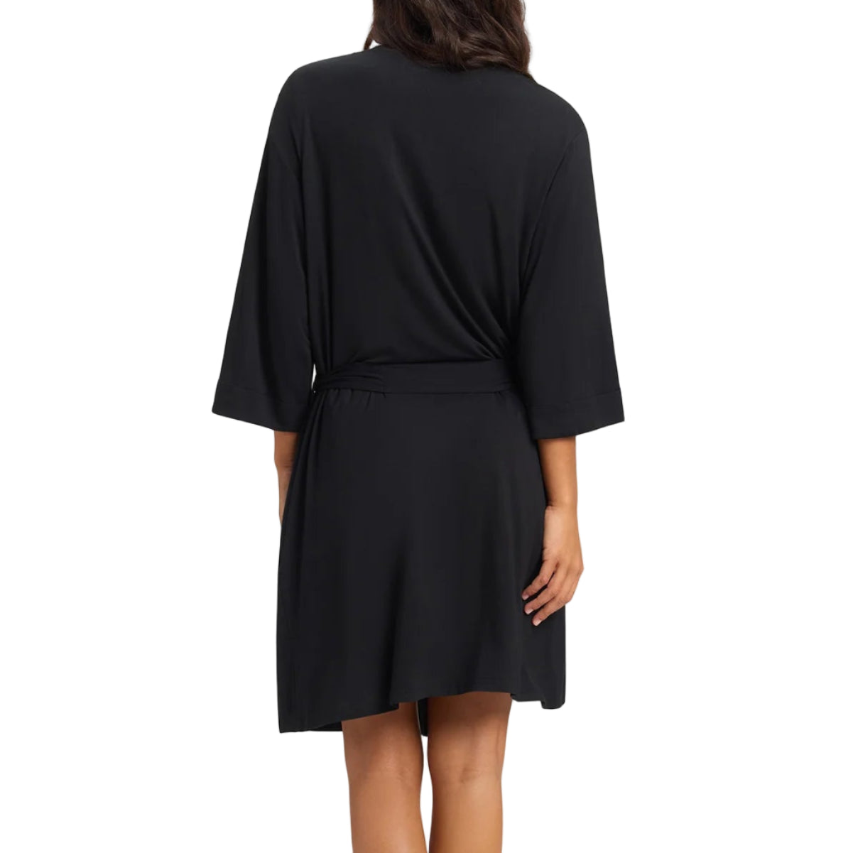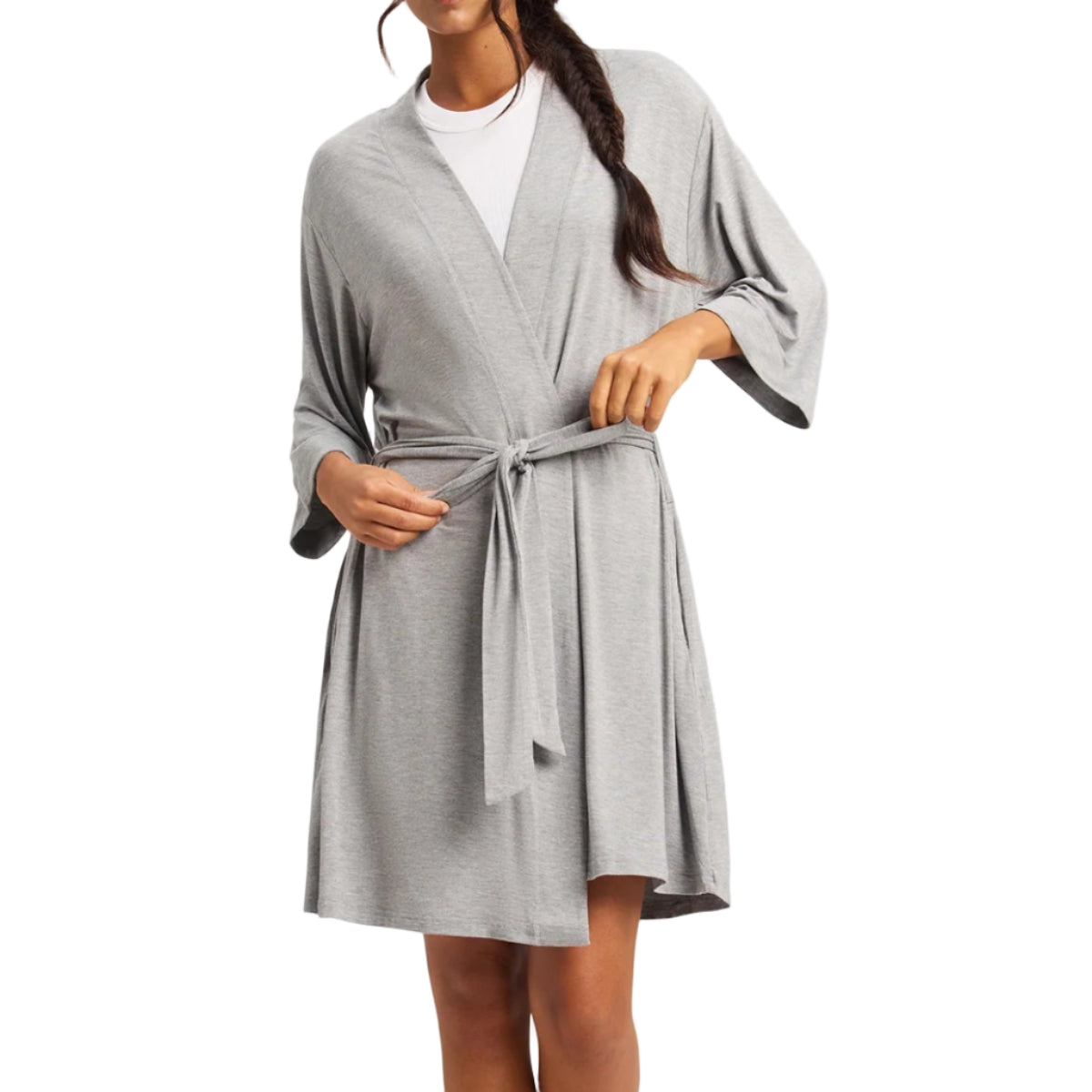 Unwinding feels extra special in our Women's Bamboo Stretch-Knit Kimono Robe. This cozy cover-up is woven from a breathable stretch-knit bamboo viscose which means you’ll never get hot. It also means the robe has a super soft, stretchy feel that gives this classic robe silhouette a drape that adds a luxuriously elegant look. The outside features pockets and an attached belt while an interior tie allows you to customize your level of coverage.