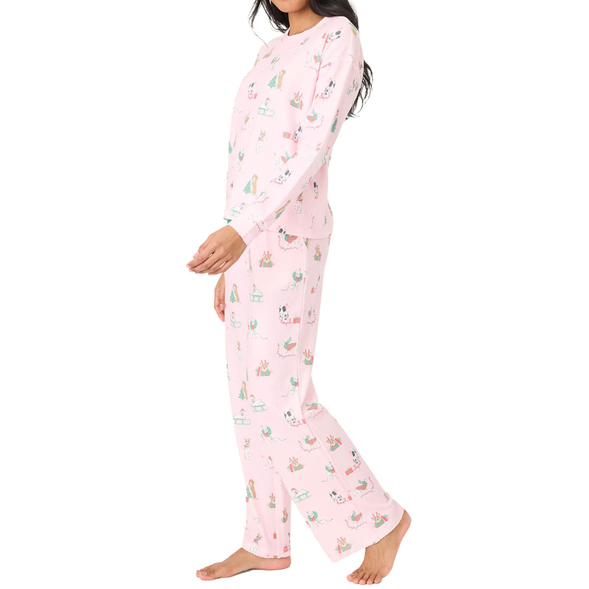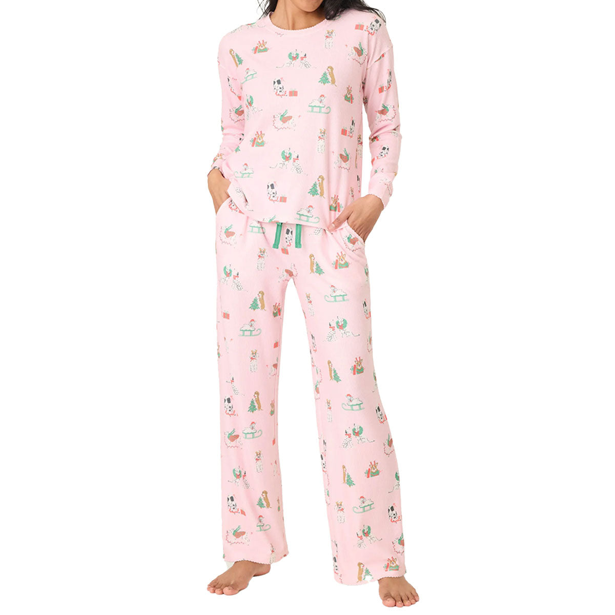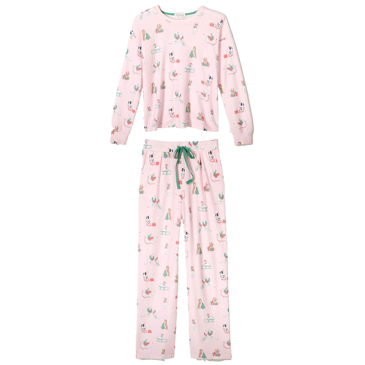 Deck the dogs with boughs of holly—this pajama short is holiday spirit wrapped in baby peachy waffle. Printed with pups in wreaths, lights, and festive gear, the drawstring pants bring cozy comfort with a playful twist that’s made for tree-trimming nights and Christmas-morning lounging.