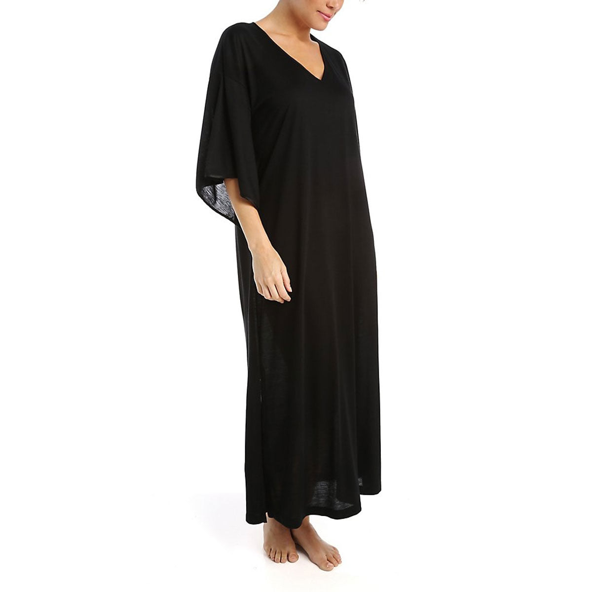 Unleash your inner diva with the N. Natori Congo Caftan Gown. Made from a luxurious combination of poly rayon and jersey knit, this effortless essential boasts a 52" length and a striking V-neck design. The side slit adds a touch of drama to this versatile and comfortable caftan.
