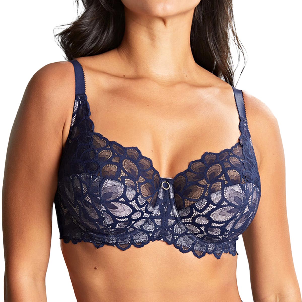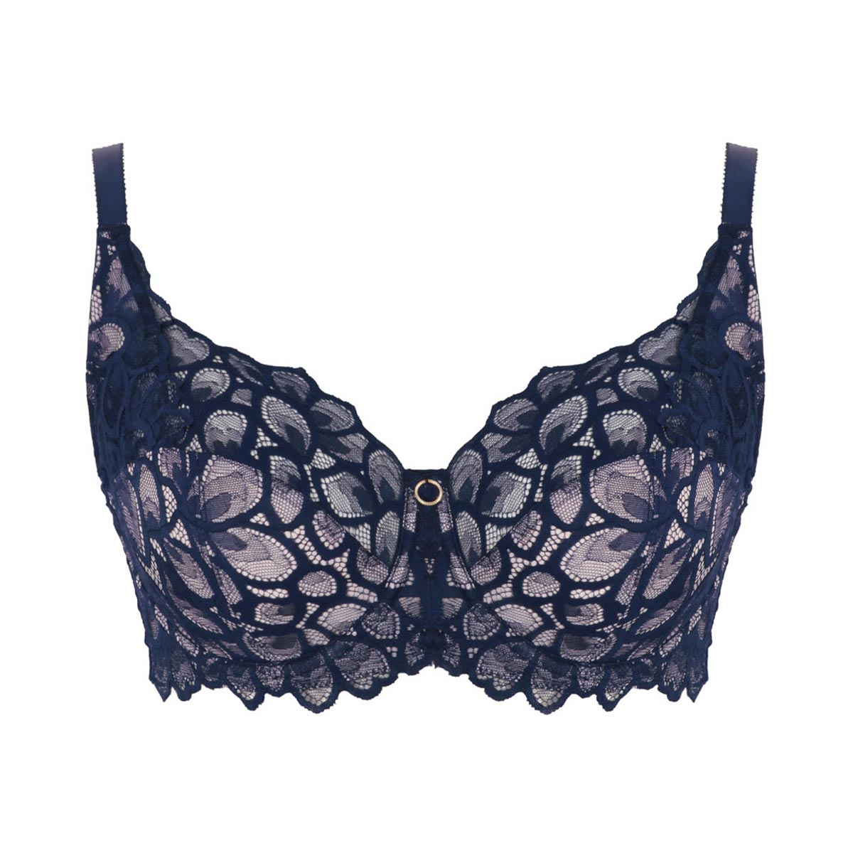 Indulge in luxury with our Panache Allure Full Cup bra in Navy. The bestselling Clara Full Cup shape provides uplifting support, while the stretch floral lace and elegant gold ring details make this a must-have for fuller busts. Experience ultimate comfort and confidence with every wear.
