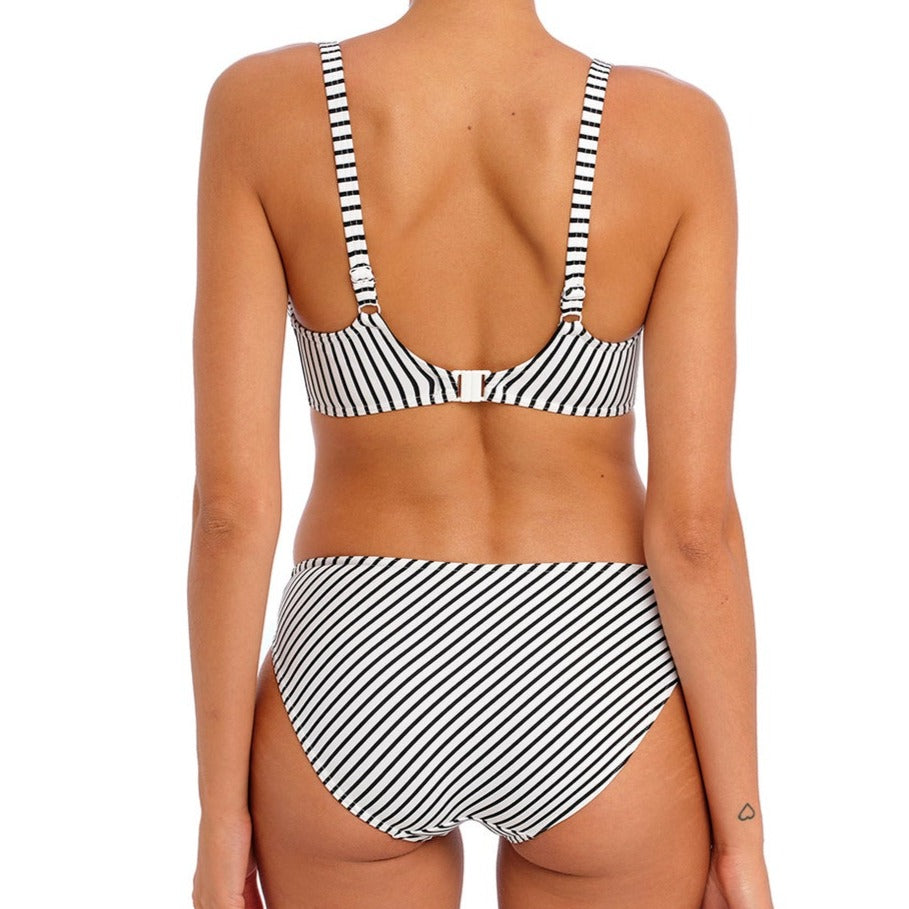 Discover the perfect combination of retro style and modern comfort with our Freya Jewel Cove Bikini Brief! This high-waisted brief provides additional coverage for your midriff while the scoop leg line flatters your figure. With medium back coverage and concealed stitching, this sleek design offers a clean and seamless look. Look and feel confident in our Stripe Black design.
