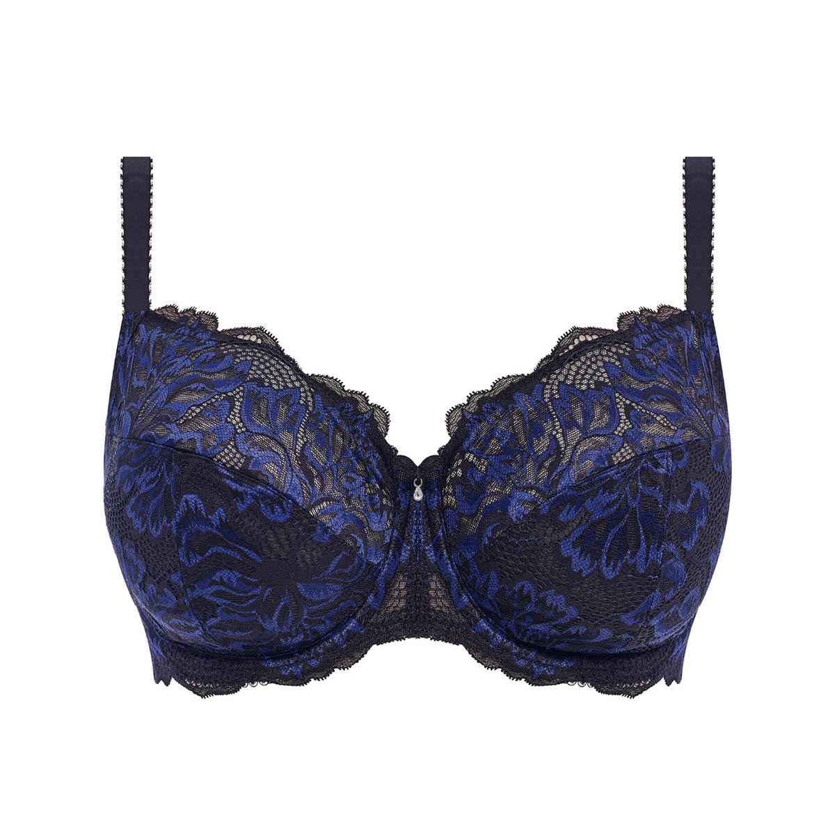 Introducing the Emmaline Side Support Bra in Midnight - a luxurious addition to your lingerie collection. Made with delicate lace detailing and three-piece cups, it offers exceptional support for a flattering shape. Elevate your everyday with the beautiful French navy lace on a classic black base.