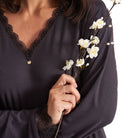 - Full-length sleeves with delicate lace trim and a relaxed fit for ultimate comfort