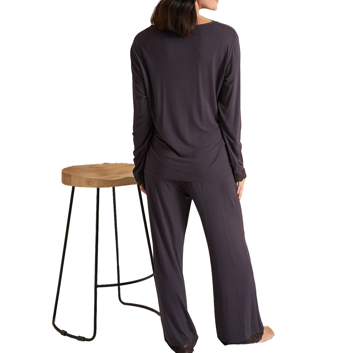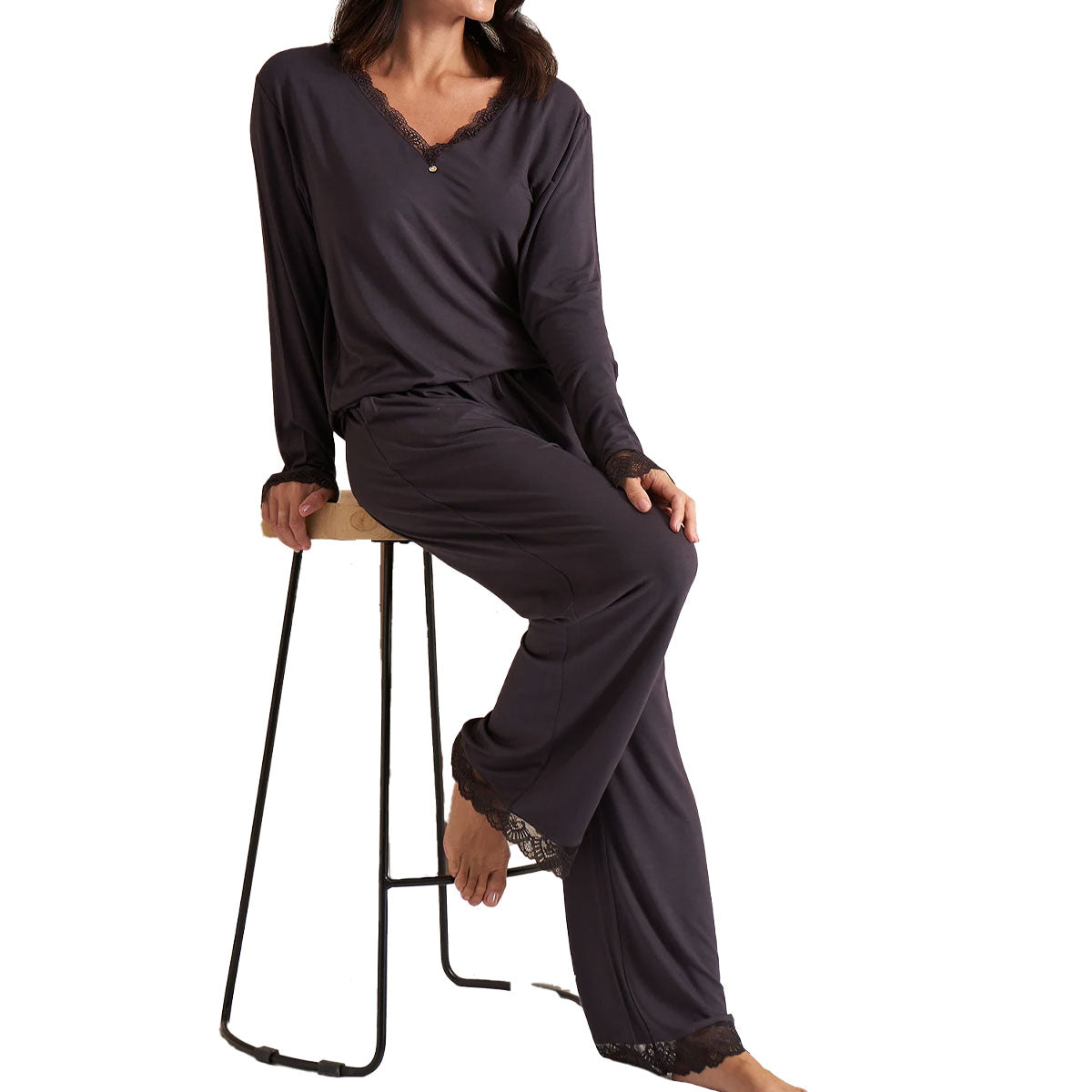 Bamboo Lace V-Neck Pajama Set | Raven