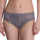 Discover modern fashion with this low-rise hipster panty from the Natori Feathers Collection. Offering full coverage, the delicate lace waist and legs flatter your shape with no sacrificing comfort. Engineered with a combination of Natori Feathers lace and mesh, this piece creates a unique and stunning silhouette!