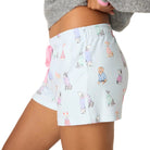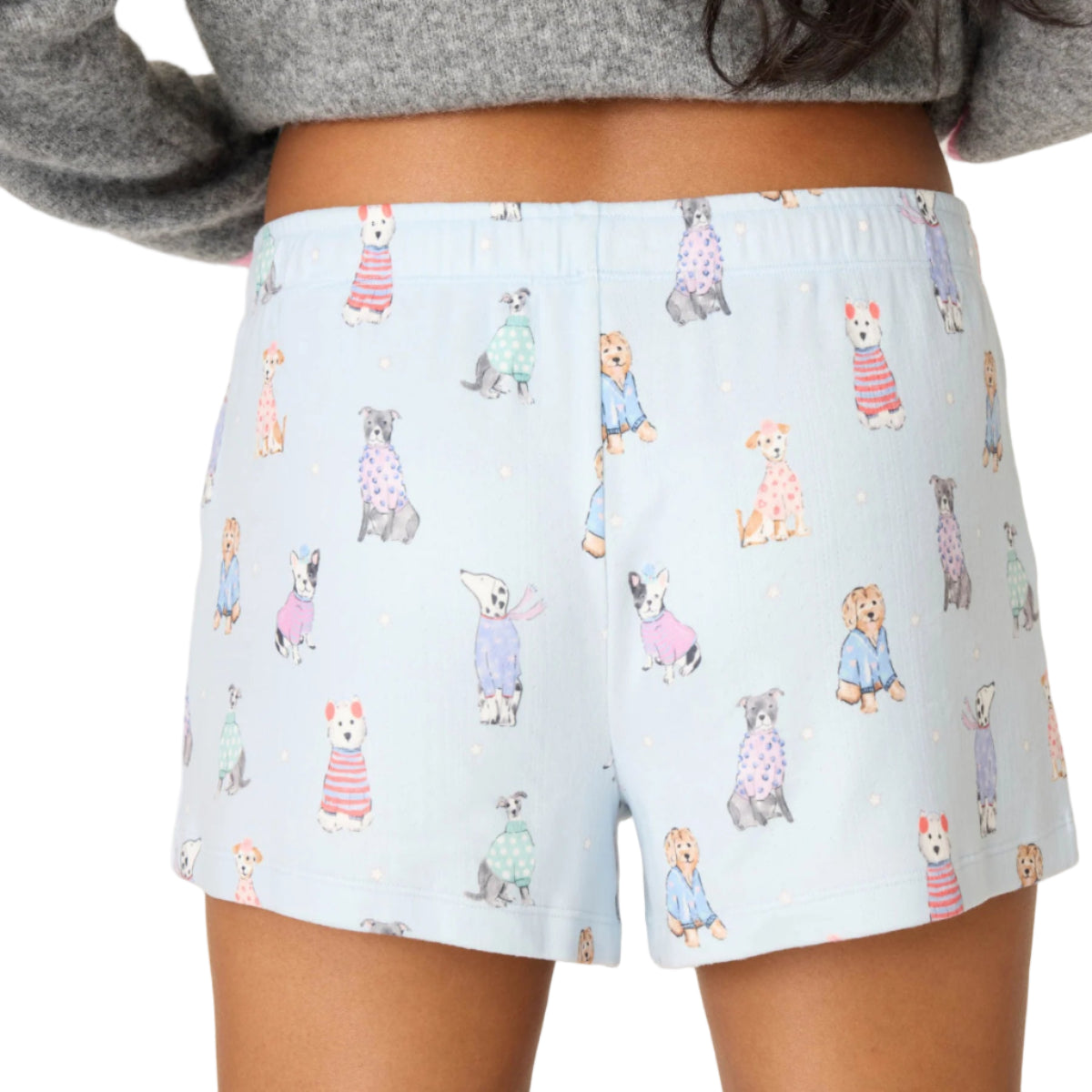 Paw-sitively cozy and snow much fun, these pajama shorts are crafted from double-brushed pointelle with a light blue backdrop dotted in playful pups dressed for winter. Finished with an elastic waistband, drawstring tie, and a relaxed fit, they’re perfect for snow-day lounging or curling up with your four-legged friend.