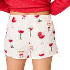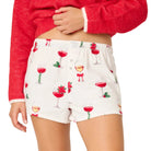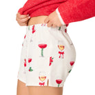 Raise a glass to cozy season in these ivory cotton flannel pajama shorts, patterned with festive wine glasses topped with poinsettias, bows, and sprigs of holly. Designed with an elastic waistband and faux fly with button detail, they’re the perfect bottoms for holiday lounging and fireside happy hours.