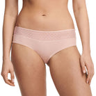 The Norah Chic Hipster panty from Chantelle combines style and eco-friendliness, featuring a graphic lace print and recycled materials for everyday comfort and invisibility under clothing. Soft, comfortable, and opaque knit with delicate finishes, along with an OEKO-TEX® Standard 100 certification, make this a guilt-free and stylish choice!