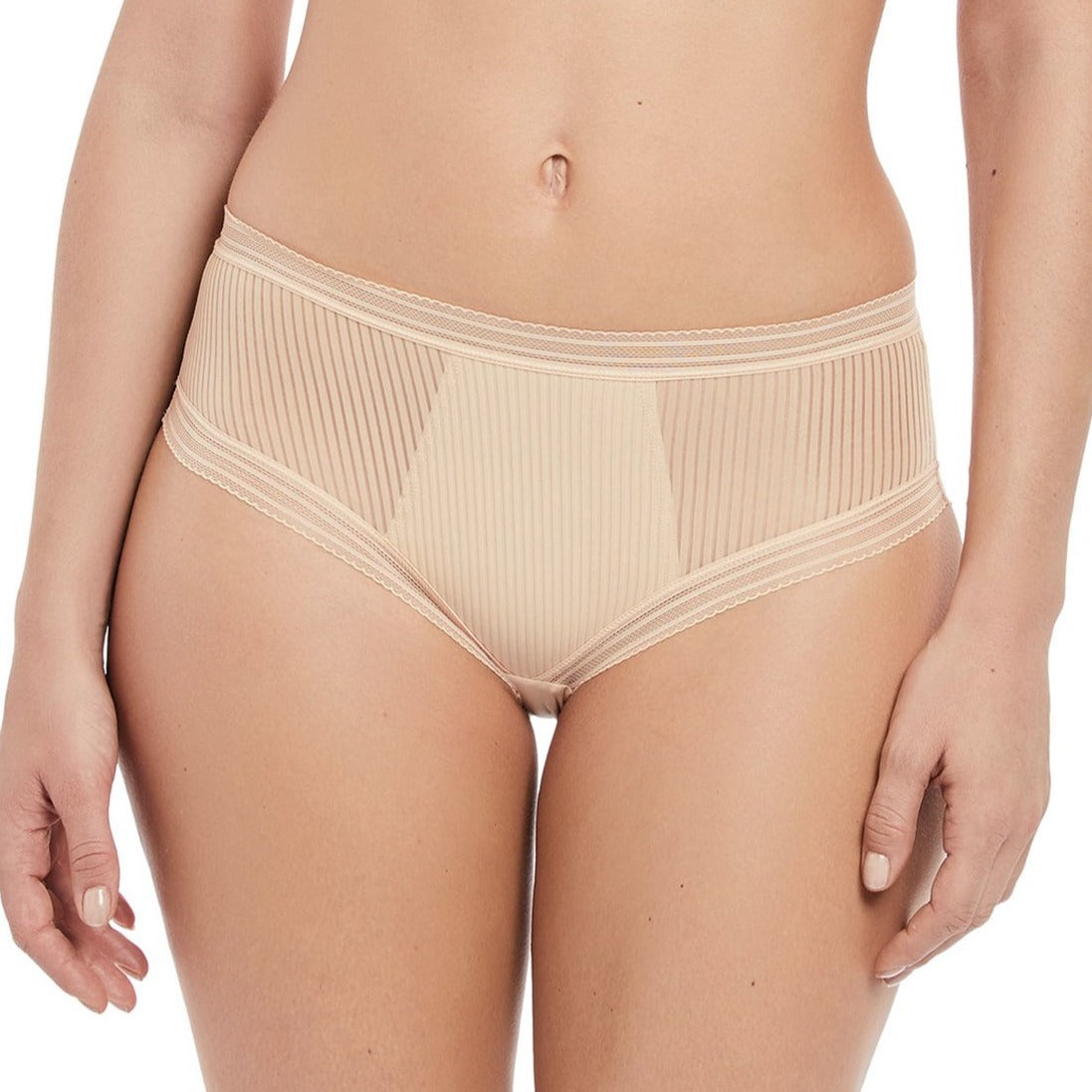 Elevate your underwear game with the Fantasie Fusion Brief panty. Crafted from a soft fabric, this brief features deep flat elastic at the waist and front leg for a smooth and comfortable fit. The gathered centre back seam offers shaping and support. Look and feel your best in these sandy beige briefs!