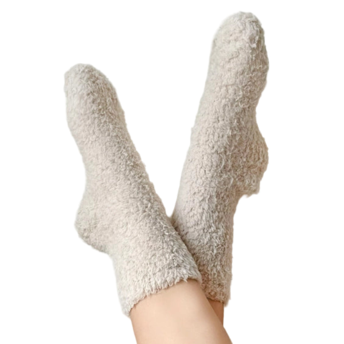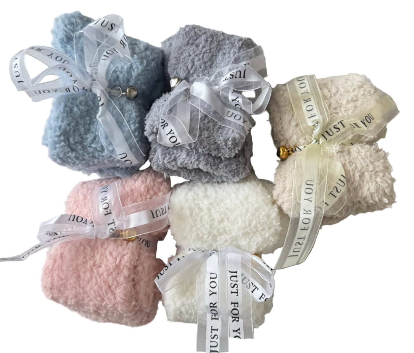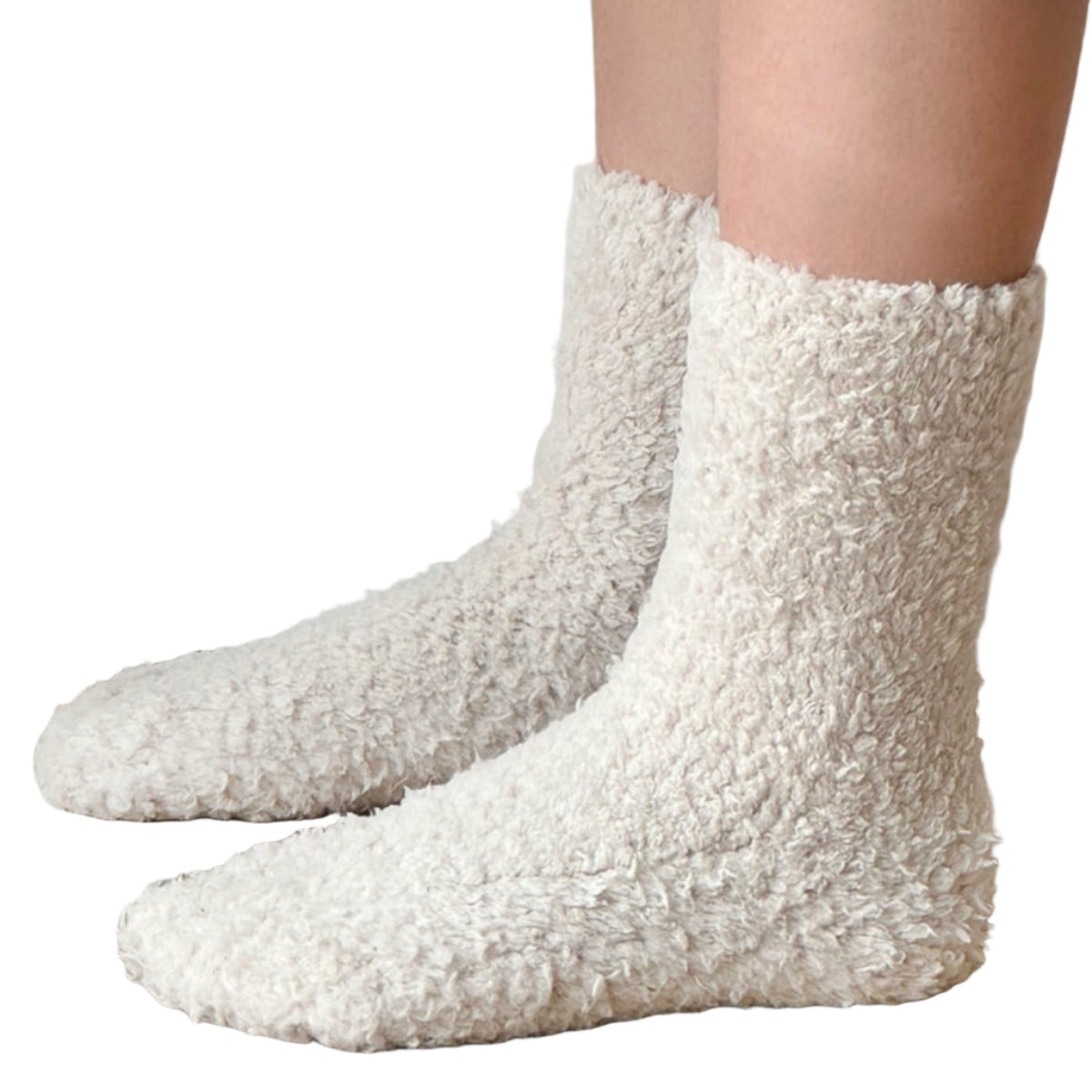 These cozy fuzzy crew-length socks are the perfect way to warm up your loved ones. Soft and squishy, these ivory colored socks feature a gold jingle bell to get you in the holiday spirit.