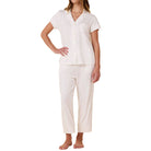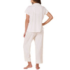 - Short-sleeved pajama top and capri-length pant with pockets