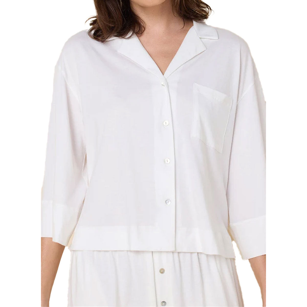 Crafted from 100% organic Peruvian Pima cotton, the Cat's Pajamas Mariposa set offers effortless ease in a breathable, silky-soft knit. Certified by GOTS (the leading global standard for organic textiles) and produced in a WRAP-certified facility that ensures fair and responsible manufacturing, each piece is designed with sustainability at its core. The oversized silhouette drapes beautifully, with three-quarter sleeves, wide cuffs, and artful button details. The relaxed, flared pant with pockets completes a look that feels both modern and timeless—made to move with you from lounging to living.