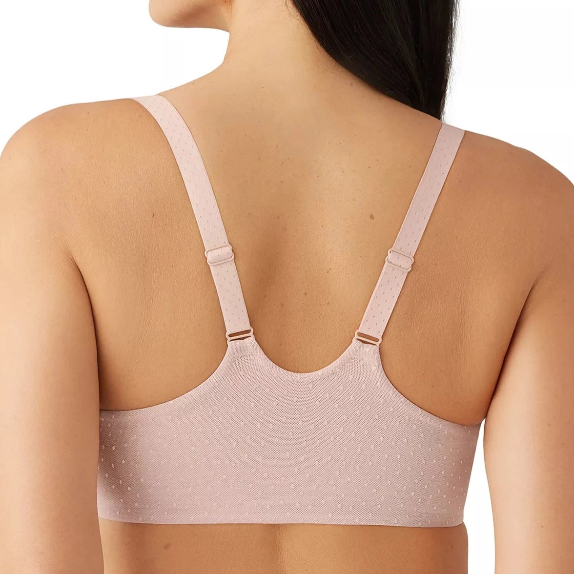 Achieve a smooth silhouette with our Back Appeal Front Close contour bra from Wacoal! The supportive cups are covered in a pretty dot jacquard fabric with a subtle sheen, while a hidden sling provides extra support. The microthin spacer fabric band helps minimize back and side bulge, all concealed under the beautiful dot jacquard fabric. Say goodbye to bulging and hello to confidence!