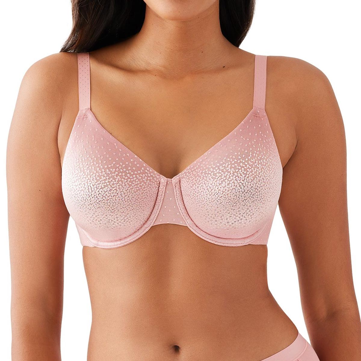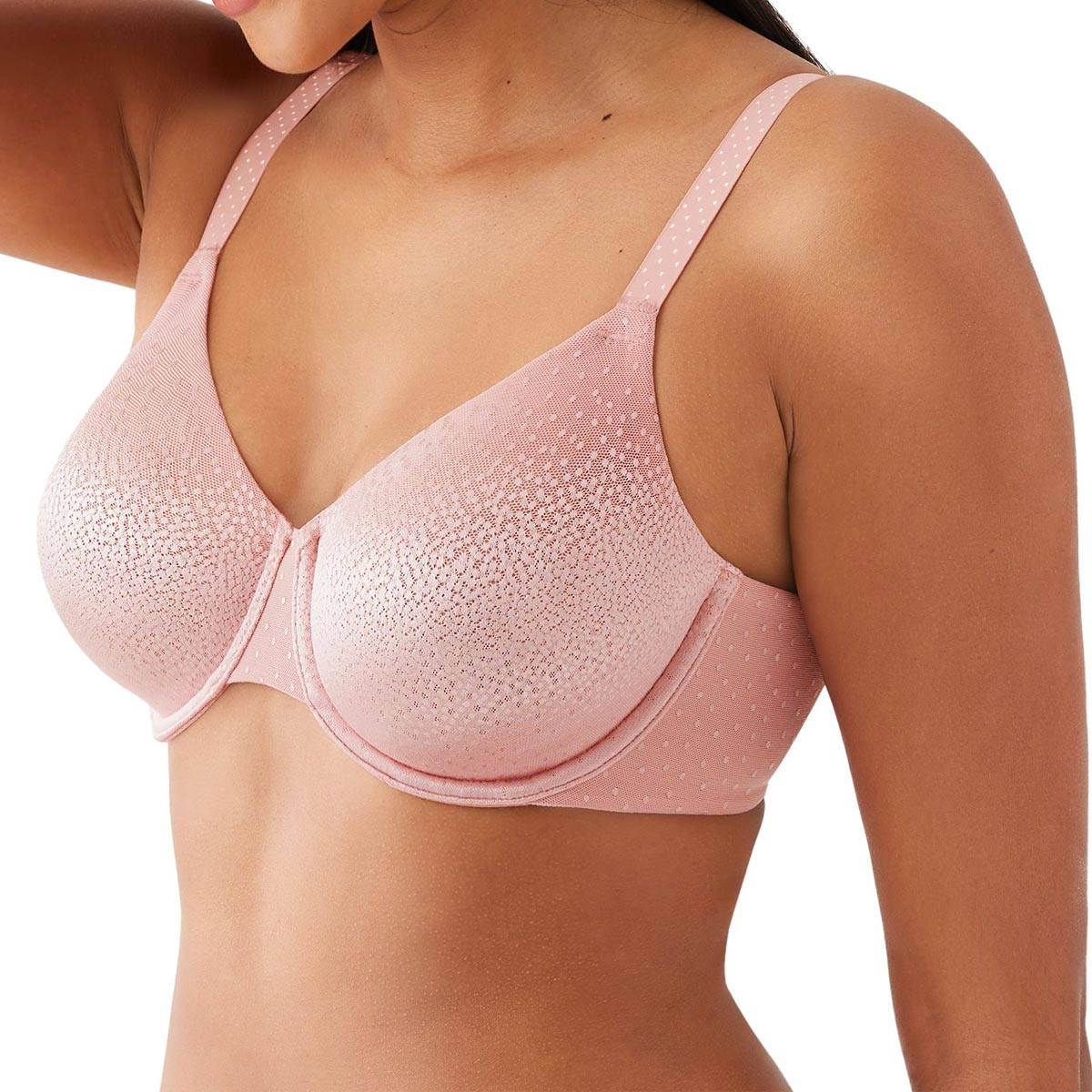 Transform your silhouette with the Wacoal Back Appeal Underwire Bra! Our best-selling solution boasts a microthin spacer fabric band, minimizing pesky bulges for a sleek, flattering look. Full coverage, adjustable straps, and hidden slings provide support and shaping, while the delicate dot jacquard fabric adds a touch of allure.