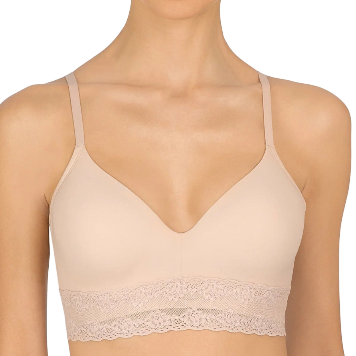 An all-day favorite, the Natori Bliss Perfection Contour Soft Cup Bra offers superior support without wires. Stretch foam cups and soft lace are designed to hug your curves for a flattering fit. A clean finished, sweetheart shaped neckline and built-up ballet back ensure you'll look and feel your best. Make everyday bliss with this must-have bra.