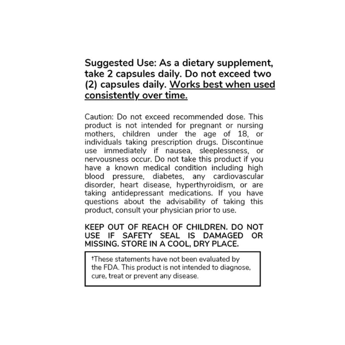 Suggested Use: As a dietary supplement, take 2 capsules daily. Do not exceed. Works best when used consistently over time.