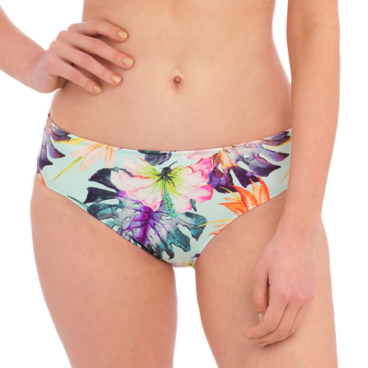 Discover the ultimate combination of style and comfort with Fantasie's Paradiso Mid Rise Bikini Brief! Featuring stunning bright florals on a Soft Mint base, these briefs provide medium coverage and all-day wearability. Make a statement and feel confident in these must-have bikini briefs.
